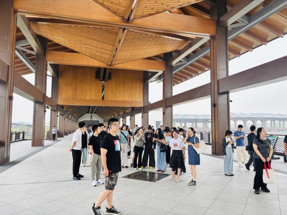 方厅水院作为长三角示范区的标志性建筑,是全国首个地跨三省域的房建项目,其以传统四合院形制为基底,融合新江南建筑风格,通过三座步行桥及连廊巧妙衔接沪苏浙皖四地主题展馆,生动诠释了“打破边界、协同共生”的一体化理念。通过讲解让学员们对跨域协同机制、审批制度创新及绿色低碳建筑等方面的创新实践有了更为直观的认识和感悟,方厅水院不仅是物理空间上的联通,更是制度创新与理念突破的重要成果。